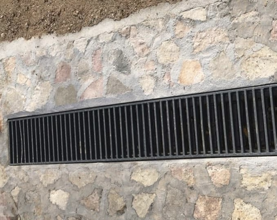Particolare delle canalette integrate nella pavimentazione permeabile.