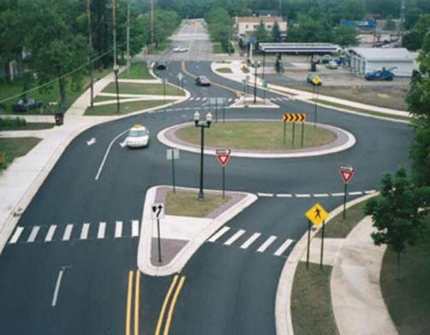 Esempio di rotatoria urbana a raso per la moderazione delle velocità e la riduzione dei punti di conflitto, modello di riferimento per la soluzione progettuale proposta.